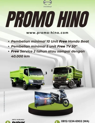 Salam hangat saya Didik, Sales Executive Hino Tangerang. Apresiasi dan ucapkan terima kasih yang sebesar-besarnya atas waktu yang telah anda luangkan untuk mengunjungi website saya. Tersedia tombol Chat di bawah ini yang bisa anda akses untuk komunikasi langsung dengan saya.
